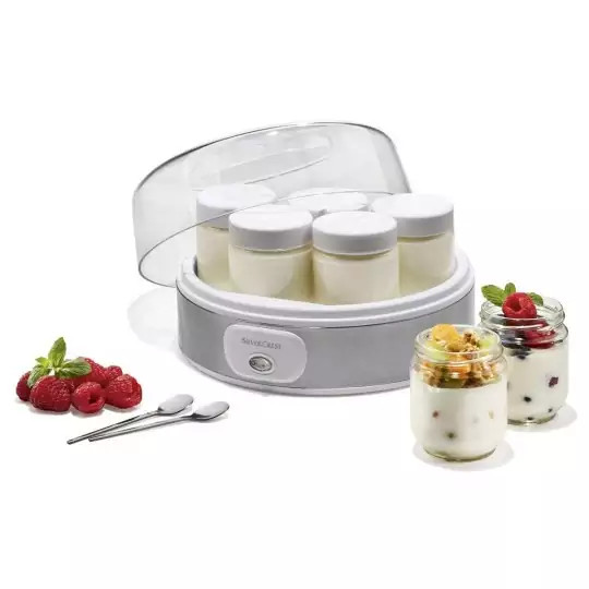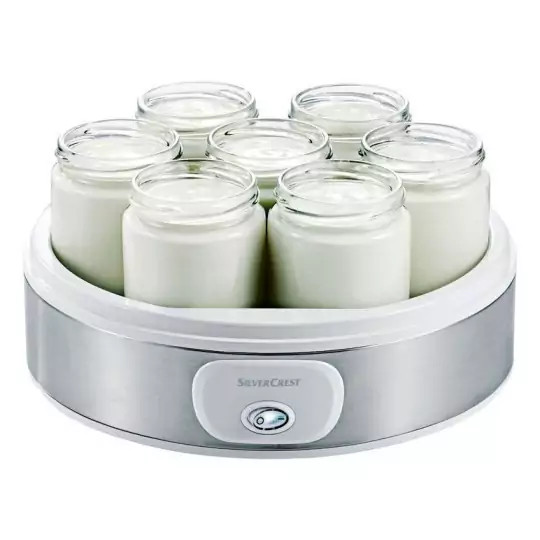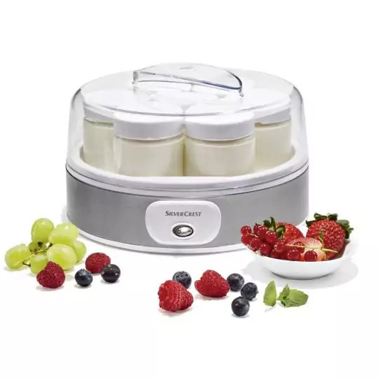 ارسال از بوشهر با تیپاکس هزینه ارسال بصورت پس کرایه یا پرداخت در مقصد میباشد دستگاه ماست ساز اتوماتیک مدل SJB 18 A1 سیلور کرست | SILVERCREST > مناسب تهیه ماست خانگی، طبیعی و بدون مواد نگهدارنده > مناسب برای درست کردن انواع ماست ساده و طعم دار > با 7 ظرف شیشه ای دارای درب پیچی و قابل شستشو در ماشین ظرفشویی > هر ظرف دارای گنجایش 180 میلی لیتر و ابعاد 6.5x6.5x8 سانتیمتر > بدنه دستگاه با روکش تمام استیل ضد زنگ و مقاوم > دستگیره اکریلیکی درب، جهت باز/بسته شدن سریع و آسان > دارای پایه های ضد لغزش جهت ثبات بیشتر دستگاه > شامل دکمه روشن/خاموش با LED نشانگر > کم مصرف و با توان مصرفی 18 وات > در ابعاد تقریبی 23x23x14 سانتیمتر > وزن به همراه ظرف های داخلی 1.9 کیلوگرم > کابل برق با بلندی تقریبی 95 سانتیمتر > دارای استانداردهای GS، TUV و CE اروپا > تولید کشور آلمان