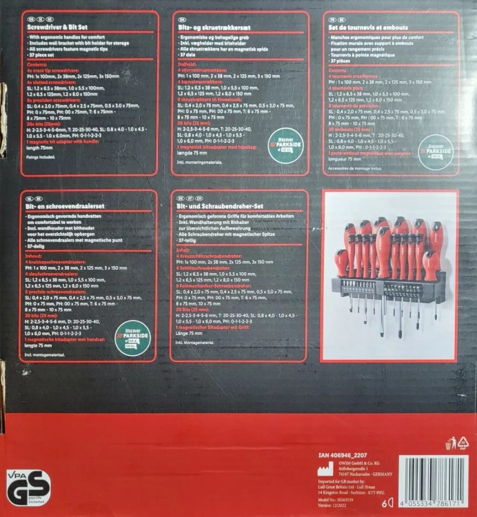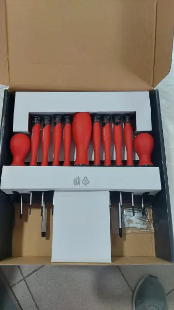 ۴ پیچگوشتی تخت: SL: ۱.۲ x ۶.۵ x ۳۸ میلیمتر، ۱.۰ x ۵.۵ x ۱۰۰ میلیمتر، ۱.۲ x ۶.۵ x ۱۲۵ میلیمتر، ۱.۲ x ۸.۰ x ۱۵۰ میلیمتر