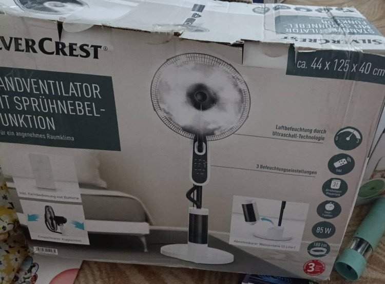پنکه ایستاده SILVERCREST - پنکه با قابلیت مه پاش - پنکه سه پایه - شامل مخزن آب 3 لیتری، تایمر و کنترل از راه دور - مه پاش - آب سیلورکرست اورجینال اصل آلمان