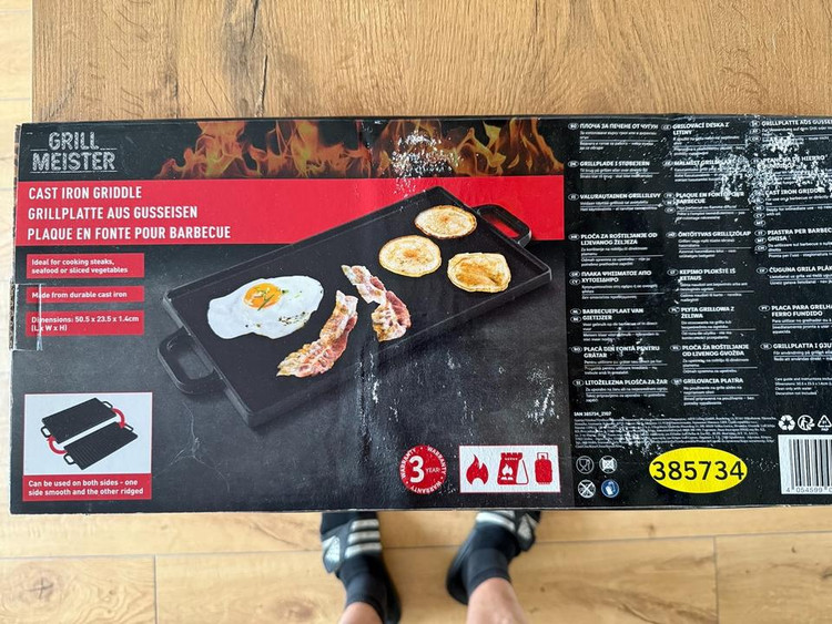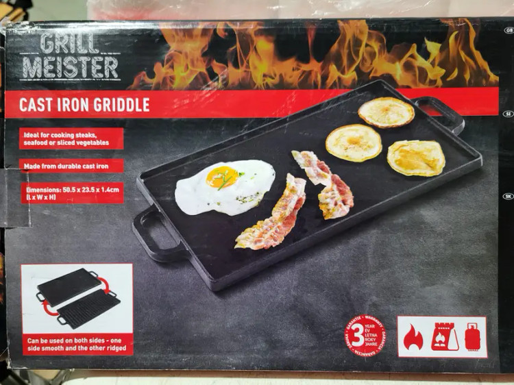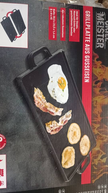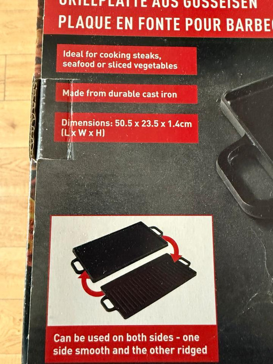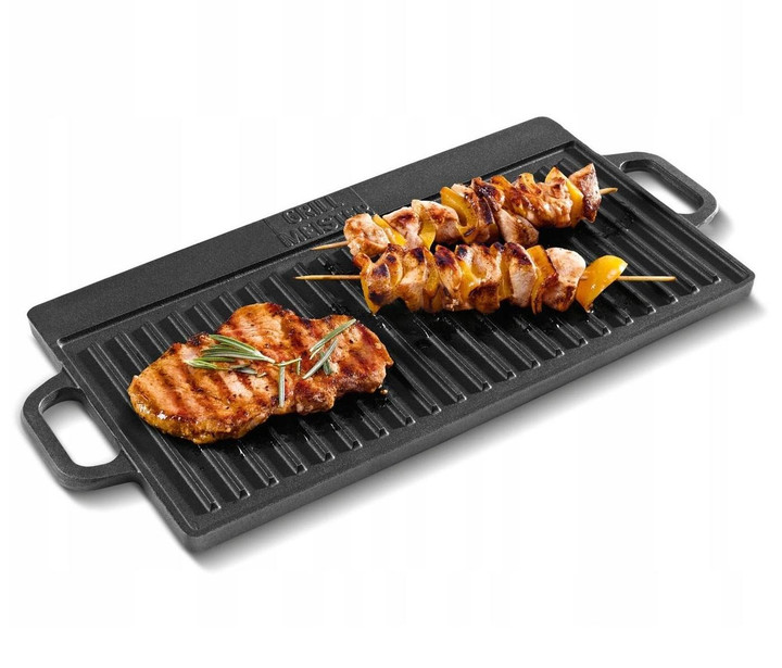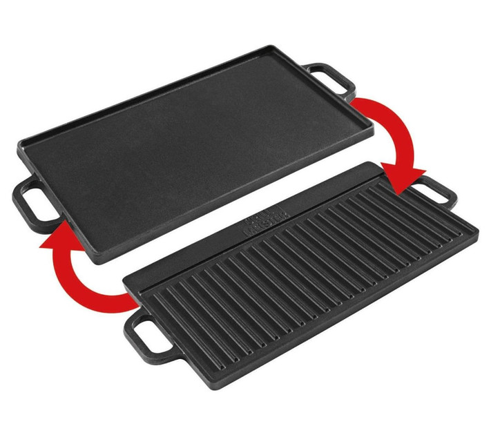 صفحه گریل چدنی. برای استفاده روی گریل یا هنگام پخت مستقیم. ساخته شده از چدن بادوام. ایدهآل برای استیک، غذاهای دریایی یا سبزیجات ورقه شده. توزیع یکنواخت و سریع گرما. قابل استفاده از هر دو طرف - با سطح صاف و شیاردار - آماده استفاده فوری - بدون نیاز به پخت. دارای دستههای کاربردی / شامل دستورالعمل استفاده و مراقبت ابعاد: 50.5 x 23.5 x 1.4 سانتیمتر (طول x عرض x ارتفاع) فقط با آب تمیز بشویید تزئینات شامل نمیشود