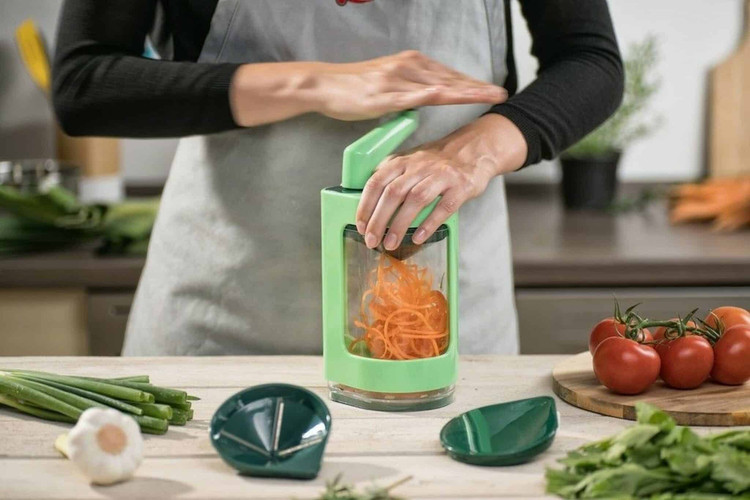 میوهها و سبزیجات را به پاستای کمکربوهیدرات، مارپیچهای تزئینی و نوارهای ظریف ژولیت تبدیل کنید - برای سالادهای تازه، سیبزمینی سرخکرده یا غذاهای خام!