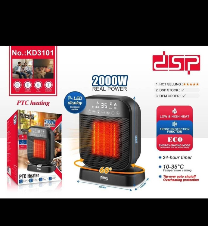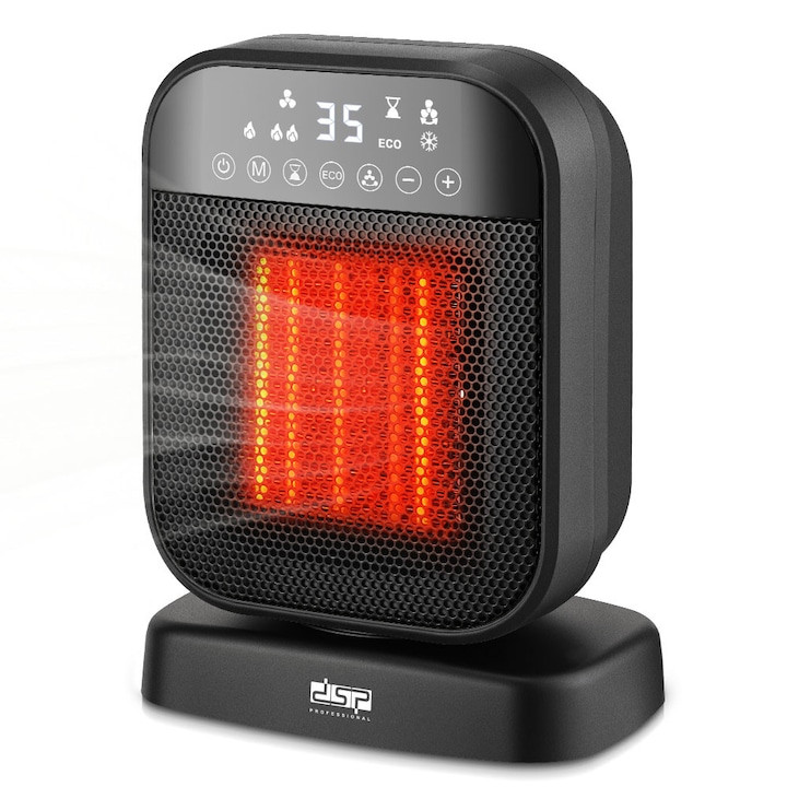 گرمکن کوارتز، DSP، محافظت در برابر گرمای بیش از حد، صفحه نمایش LED، تایمر 24 ساعته، زاویه نوسان 60 درجه، گرمایش PTC، تنظیم دما 10-35 درجه سانتیگراد، مشکی