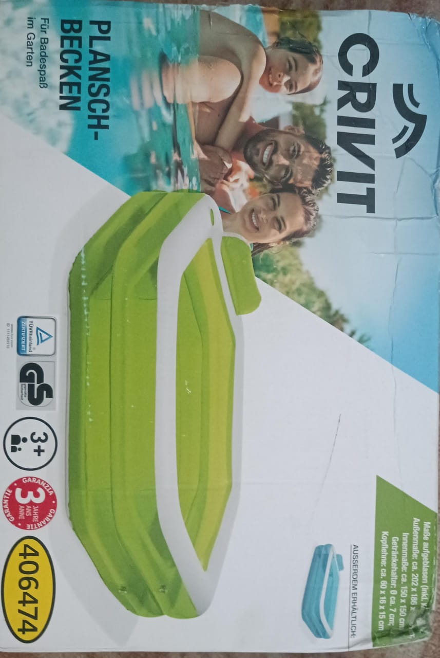 استخر کودکان Crivit توضیحات لذت شنا در باغ تکیهگاه سر یکپارچه برای استراحت جالیوانی یکپارچه سیستم دو محفظهای با ساختار کف مقاوم دریچههای رهاسازی سریع برای باد کردن و خالی کردن آسان سوراخ تخلیه برای تخلیه سریع و راحت آب شامل 2 وصله تعمیر مستطیل حداکثر حجم: تقریباً 500 لیتر شش ضلعی حداکثر حجم: تقریباً 530 لیتر ابعاد شش ضلعی: ابعاد خارجی: تقریباً 202 x 186 x 46/60 سانتیمتر ابعاد داخلی: تقریباً 150 x 150 سانتیمتر جالیوانی: تقریباً 7 سانتیمتر تکیهگاه سر: تقریباً 60 x 16 x 15 سانتیمتر مستطیل: ابعاد خارجی: تقریباً 202 x 151 x 46/60 سانتیمتر ابعاد داخلی: تقریباً 147 x 100 سانتیمتر جالیوانی: تقریباً 7 سانتیمتر تکیهگاه سر: تقریباً 60 x 16 x 15 سانتیمتر وزن مستطیل: تقریباً ... ۳.۳۵ کیلوگرم شش ضلعی: تقریباً ۳.۲۵ کیلوگرم