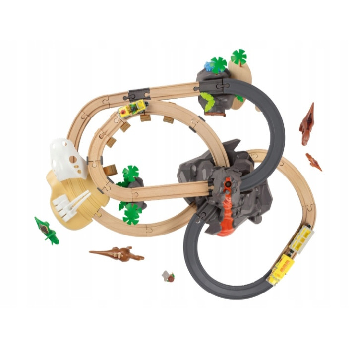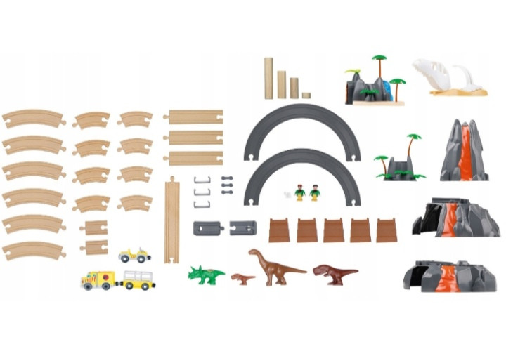 اسباب بازی ریسینگ قطار چوبی 49 تکه پارک دایناسور پلی تیو اورجینال آلمان